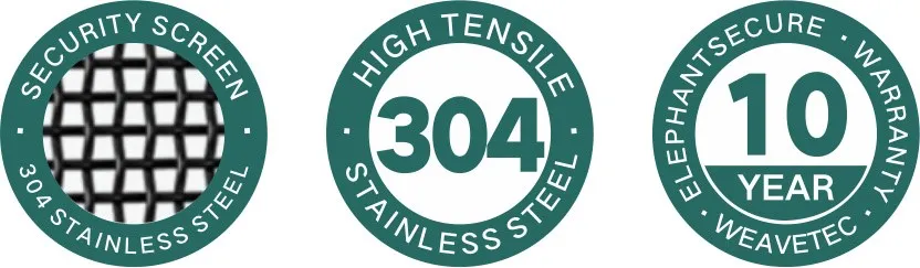 Elephantsecure®️ Sicherheitsbildschirme Fenster und Tür werden mit einer erweiterten 10- -Ge -Garantie . Wenden Sie sich an unser Verkaufsteam, um detaillierte Begriffe .